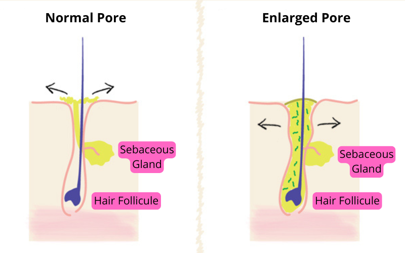 Pores are a natural part of your skin. They act like tiny channels, allowing oil from your sebaceous glands to reach the surface, spread evenly, and keep your skin hydrated and protected. Their walls are flexible, much like a balloon. While each pore has a minimal, genetically determined size, several factors can make them appear larger: